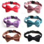 Velvet Adjustable Solid Colour Cat Collar Bowknot Puppy Kitten Collars with Bell Cats Bow Tie Cat Accessories Pet Supples